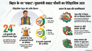 Current Affairs 2026: 15 अप्रैल, 2026 को बिहार की राजनीति में एक बड़ा ऐतिहासिक उलटफेर देखने को मिला है। जनता दल यूनाइटेड (JDU) के प्रमुख नीतीश कुमार द्वारा मुख्यमंत्री पद से इस्तीफा देकर राज्यसभा जाने के बाद, भारतीय जनता पार्टी (BJP) के प्रदेश अध्यक्ष सम्राट चौधरी (Samrat Choudhary) ने बिहार के 24वें मुख्यमंत्री के रूप में शपथ ली है। यह बिहार के इतिहास में पहली बार है जब भाजपा का कोई नेता मुख्यमंत्री पद पर काबिज हुआ है।