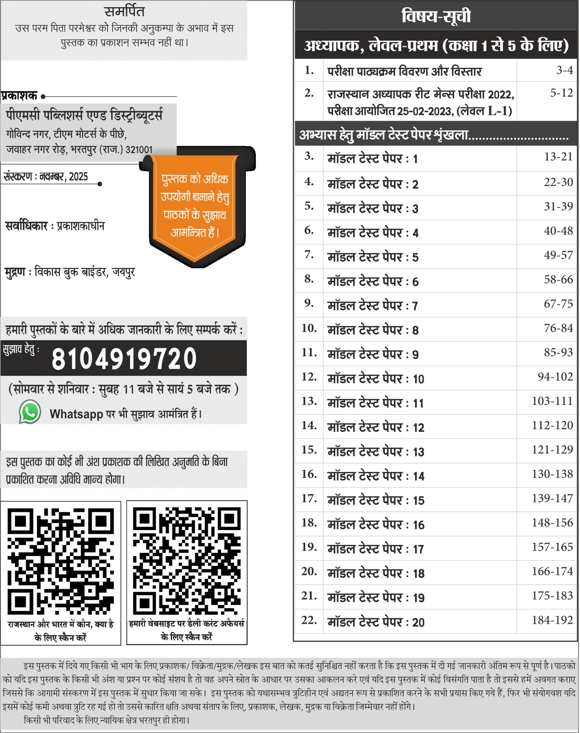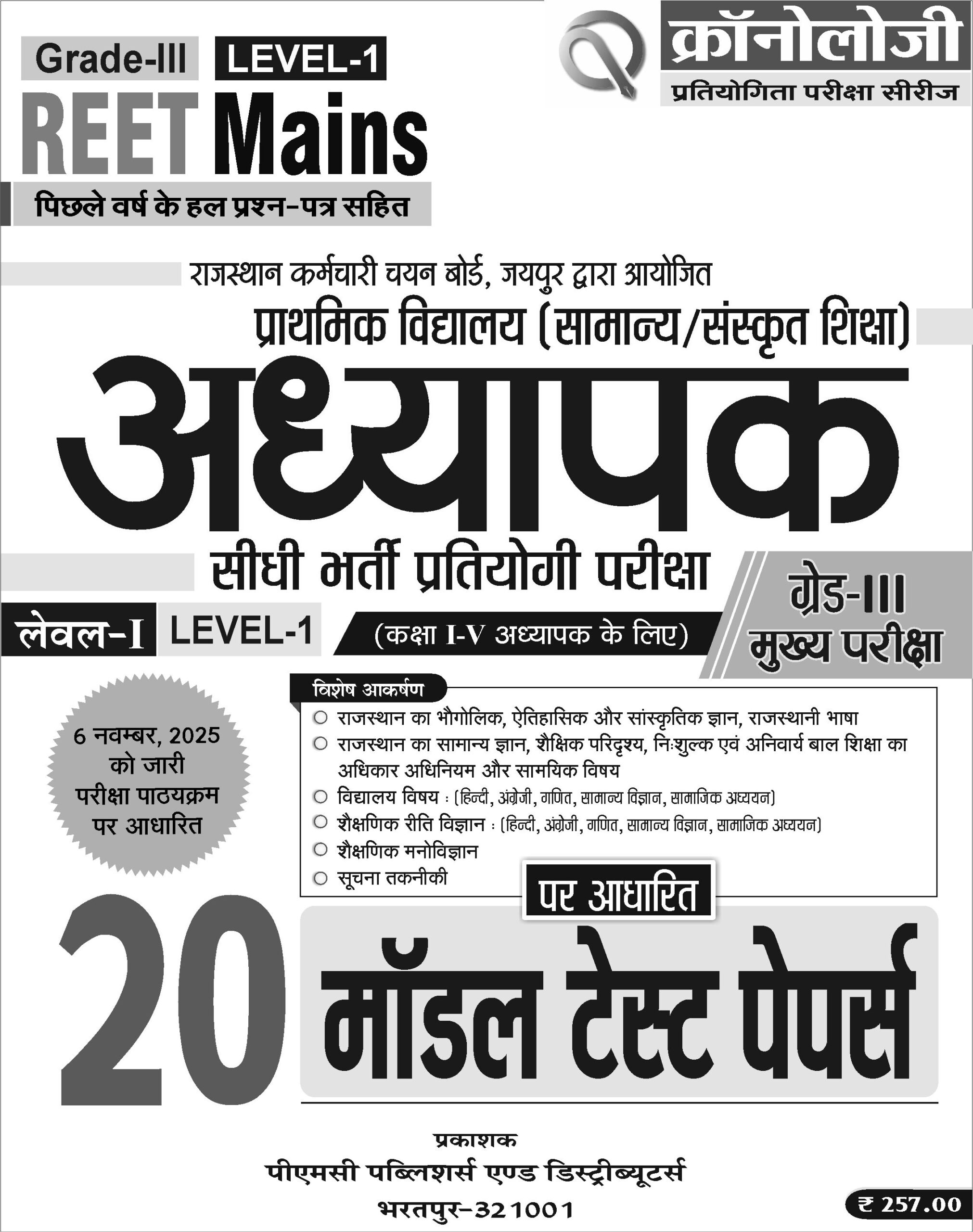 Chronology Pratiyogita Pariksha Series | Reet Mains 3rd Grade (L-1)| 20 Model Test Papers + 1 Solved Paper | 2025 | Hindi Medium | Based on updated syllabus (Nov 6, 2025)